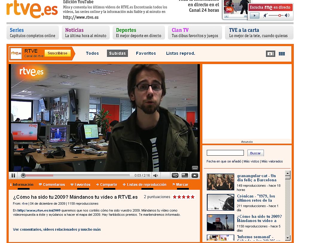 Sin embargo, al entrar a las páginas finales de vídeo, como por ejemplo ésta de Muchachada Nui del canal oficial de RTVE en YouTube, el vídeo se visualizaba correctamente.