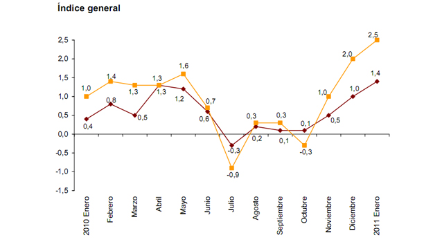 De acuerdo con los datos publicados por el Instituto Nacional de Estadística (INE), la variación mensual del Índice de Precios de Importación (IPRIM) fue del 2,5% y la del Índice de Precios de Exportación (IPRIX), del 1,4%.