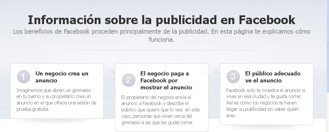 "La publicidad hace posible que Facebook sea gratuito. Los creadores de Facebook siempre han querido que fuera así. Actualmente, los costes de Facebook ascienden a más de 1.000 millones de dólares (763,6 millones de euros) anuales y la publicidad es el modo de sufragarlos", asegura la red social.