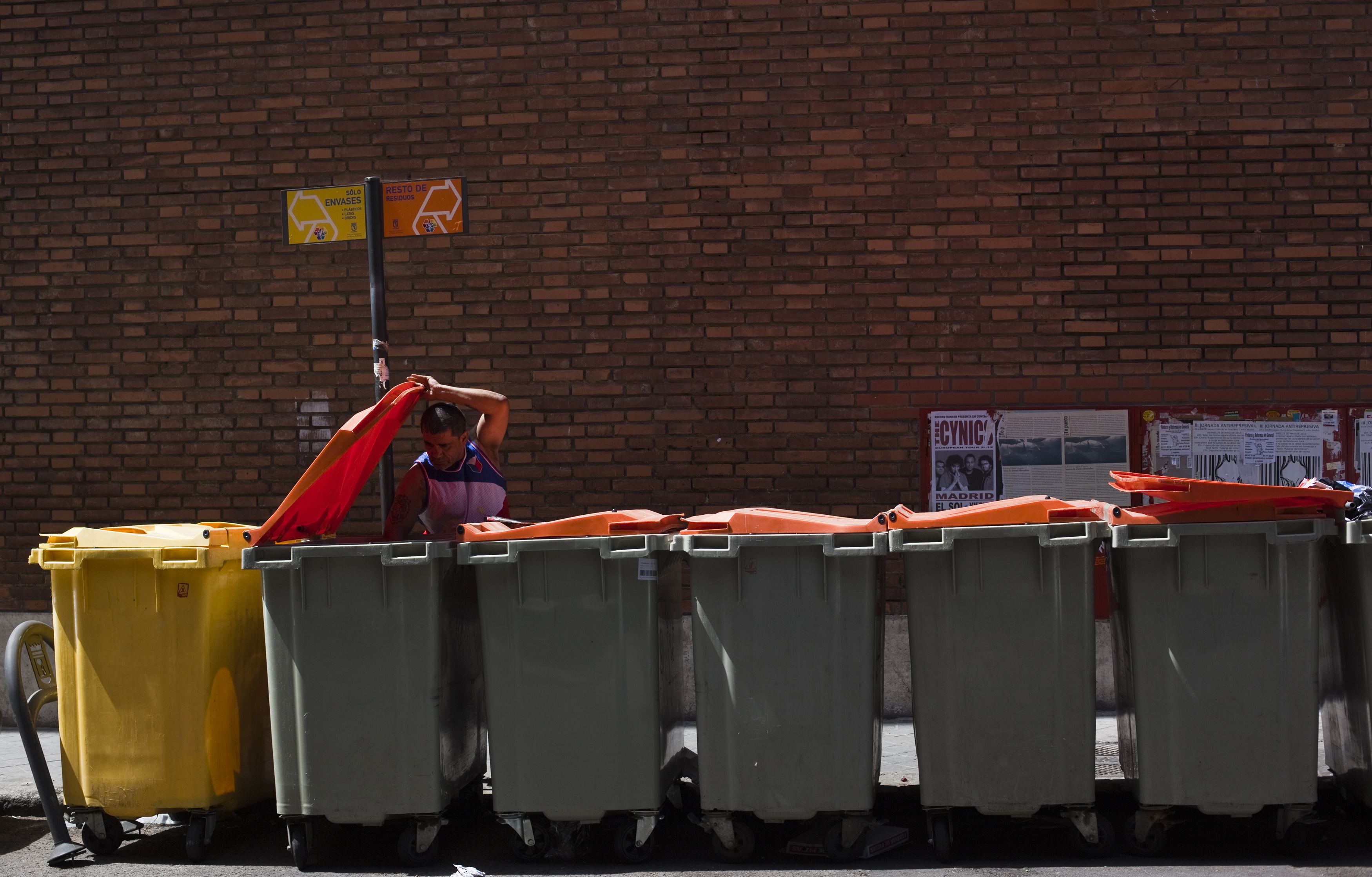 En Madrid, con 3.265.038 habitantes según el padrón de 2011, hasta ahora la basura domiciliaria se recoge a diario, pero desde el 1 de enero de 2013 la recogida será de lunes a sábados, excepto festivos. La recogida del contenedor amarillo de envases, hasta ahora diaria en los cubos domiciliarios, se hará tres veces en semana y tres días a la semana en los de la vía pública.