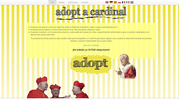 Pero en la era de internet también hay iniciativas para hacer el cónclave algo más participativo. Una de ellas es Adoptacardinal.org (Adopta a un cardenal). Se trata de una página web en la que puede "adoptarse" a uno de los cardenales del cónclave para rezar por él.