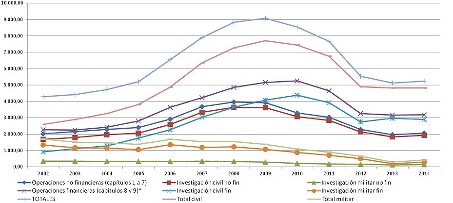 El incremento de los presupuestos en I+D se ha producido sobre todo en la investigación militar (un 37,68%) y en menor medida en las partidas no financieras o subvenciones (un 0,04%).