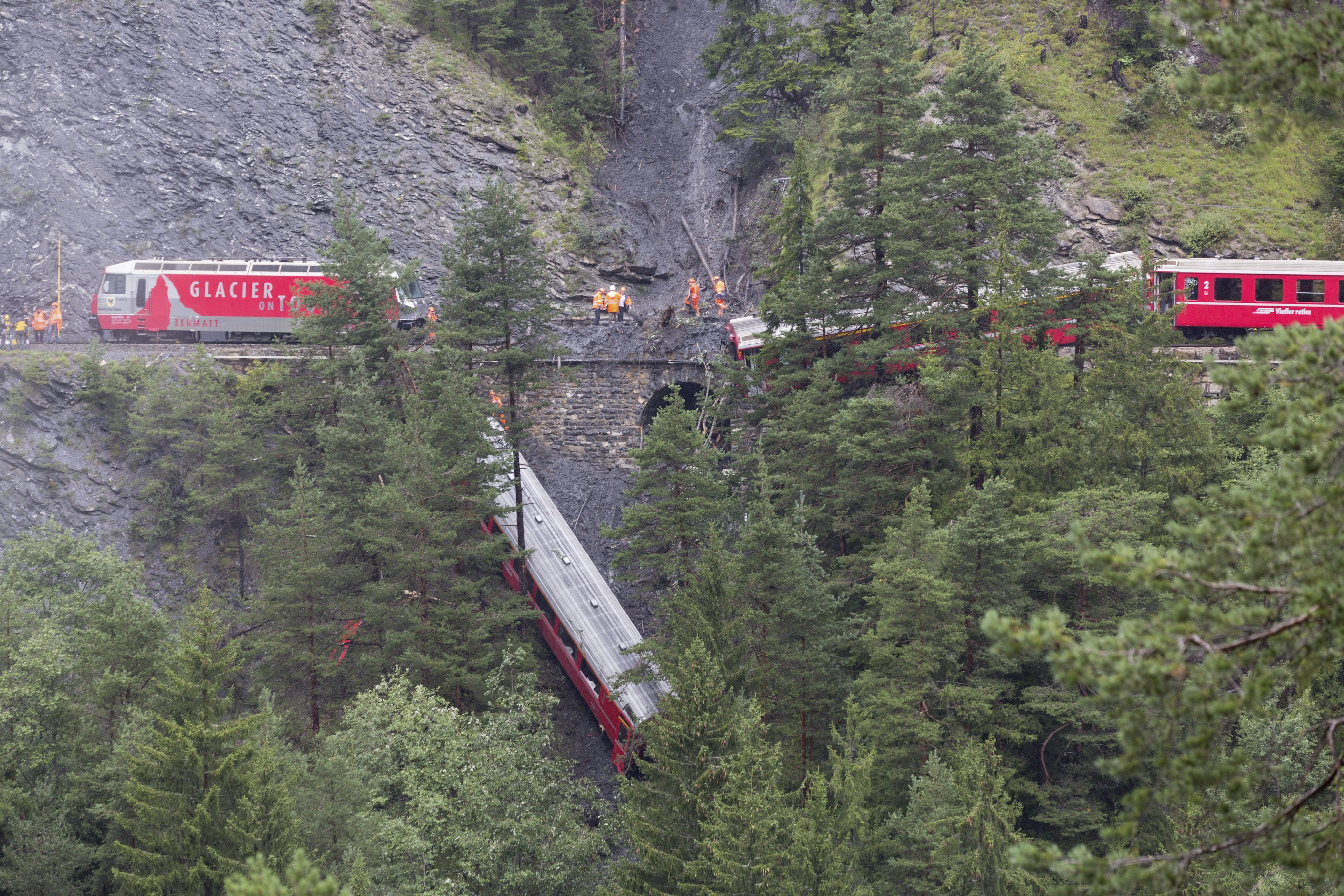 Un tren ha descarrilado este miércoles entre las localidades suizas de Coire y Saint Moritz (cantón de Grisones) debido a un deslizamiento de tierra. La Policía ha declarado en manifestaciones recogidas por la agencia EFE que varias personas han resultado heridas, pero las dificultades para acceder al lugar no permiten concretar con cifras estos datos.