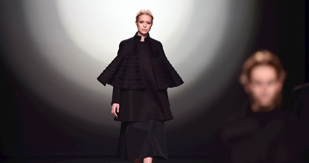 Ángel Schlesser navega por aguas tranquilas con una propuesta de elegancia urbana, feminidad contenida y detalles arty. Códigos que arrastra de una colección a otra pero que siempre presenta renovados, ya sea por los tejidos, las formas o el color.