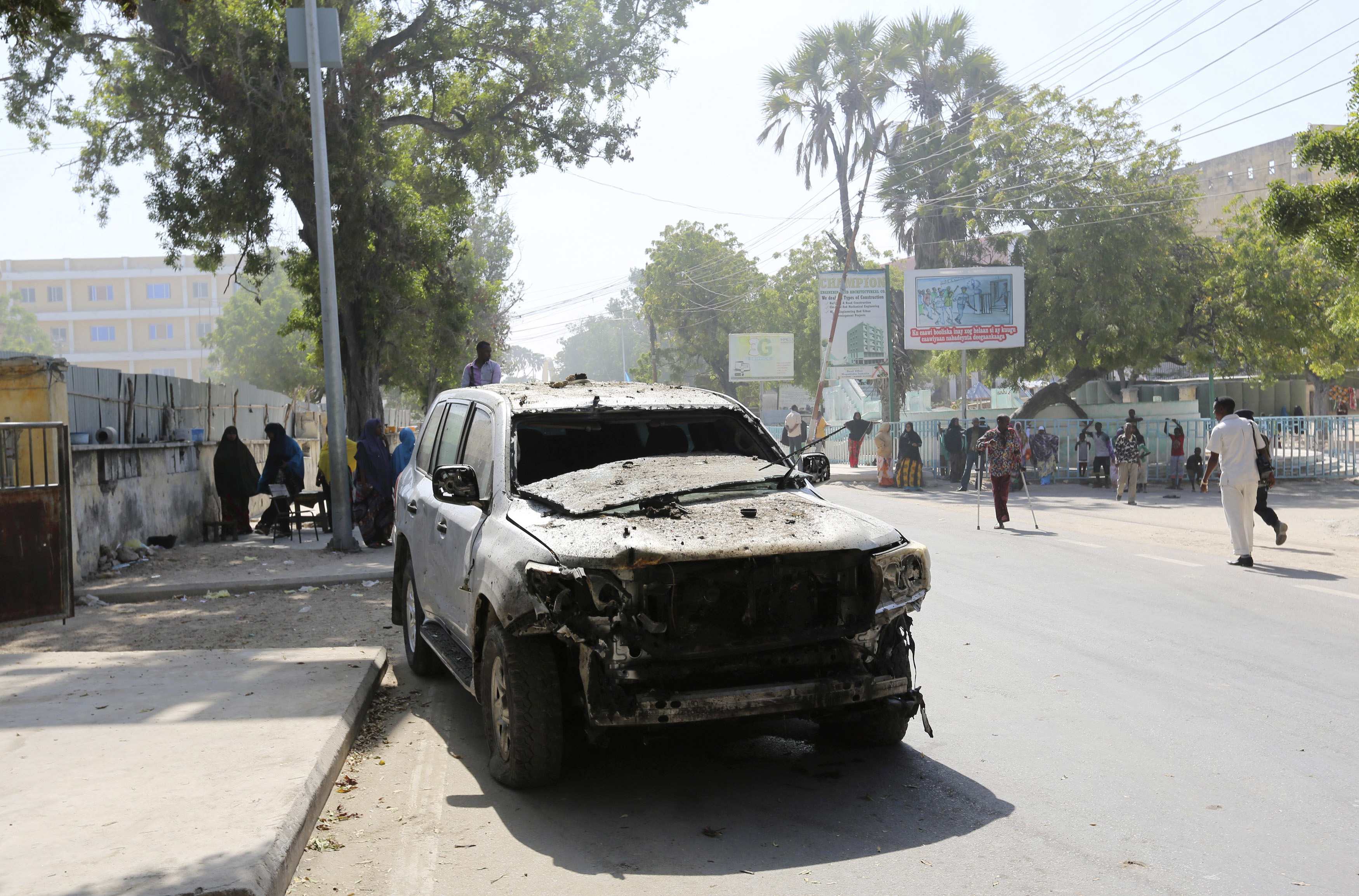 Entre los heridos hay al menos un diputado, el vice primer ministro, Mohamed Omar Arte, y el ministro de Transporte Marítimo Nur Farah Hirsi (y no el de Transportes, Ali Ahmed Jamac, como se había informado anteriormente) según fuentes policiales citaas por Reuters.