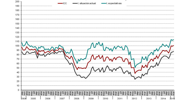 El resultado de este mes supone un nuevo máximo en la serie del índice que por primera vez logra situarse por encima de los 100 puntos, según el Indice de Confianza del Consumidor (ICC) publicado este lunes por el Centro de Investigaciones Sociológicas (CIS).
