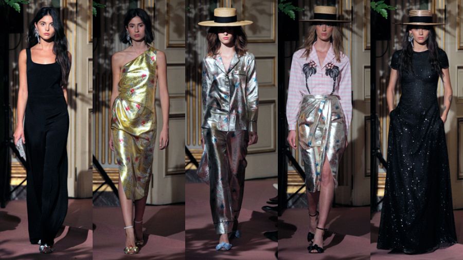 Destacan las trajes inspirados en los pijamas, confortables y atrevidos a la vez, ya que van realizados en texturas brillantes, muy trabajadas como si fueran mantones de Manila.