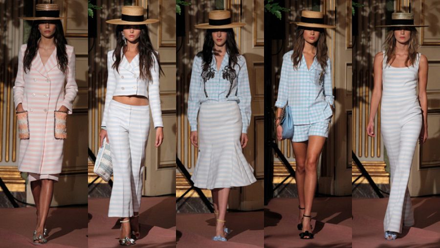 - Rayas y cuadros vichy y flores decoran sus prendas sofisticadas