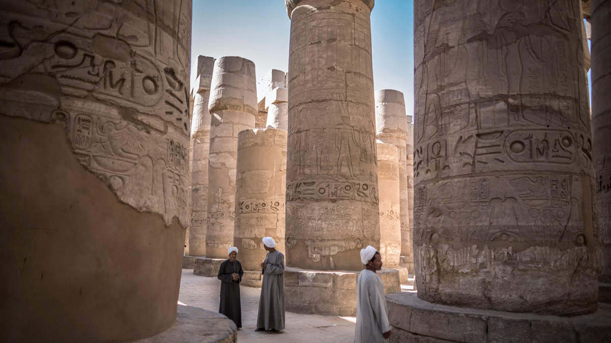 Guardias vigilan el templo de Karnak en Luxor, una de las principales atracciones turísticas de Egipto