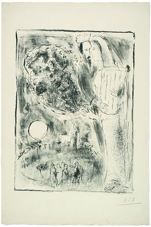 Fiel a su estilo, el creador dejó de lado el contenido religioso y su reinterpretación se centra en la hondura psicológica de los episodios del Antiguo y el Nuevo Testamento en una obra maestra irrepetible, donde Chagall elegía los temas en función de sus predilecciones personales. Él mismo explicó: “La Biblia es, para mí, pura poesía, una tragedia humana”.