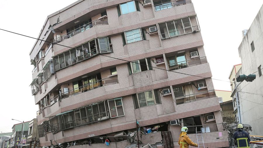 El panorama en Tainan es devastador, con edificios derrumbados, otros con plantas derruidas y algunos inclinados y dañados en sus cimientos, en medio de fugas de gas e interrupción de la electricidad en la zona.