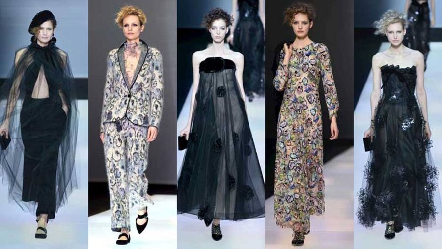La frontera entre el armario femenino y el masculino se rompe con gracia y algunos elementos se intercambian para crear looks que juegan a ser y parecer. Armani no rescata ideas pasadas, su moda es una incansable evolución de un estilo, siempre con un patrón recio, perfecto, y a menudo con un aroma oriental.