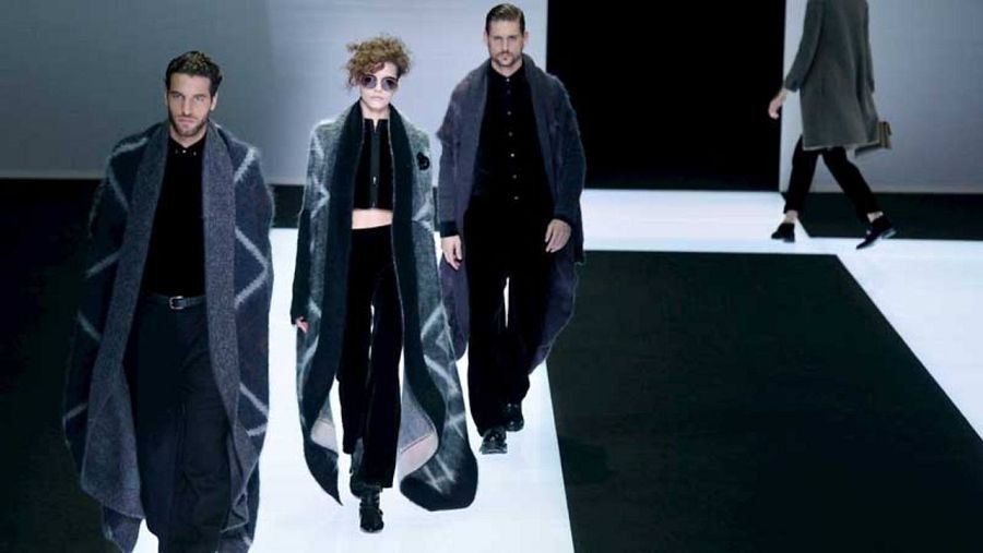 Mucho se habla ahora de las pasarelas mixtas y es cierto destacar que Armani lleva años presentando prendas de hombre y mujer en sus pasarelas. Para ellos vemos capas de lana que son una elegante opción para abrigarse. Para ellas, además, ricos vestidos de fiesta.