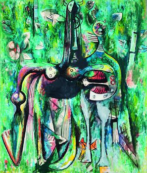 El aterrizaje de Lam en la isla, de la mano de Breton, le afectará profundamente pero ahondará en su labor como puente entre las vanguardias internacionales, Europa, y América. La mezcla sincrética, en figuras que mixturan lo vegetal, lo animal y lo humano, es un canto a la espiritualidad de las culturas caribeñas que inundará su actividad artística.