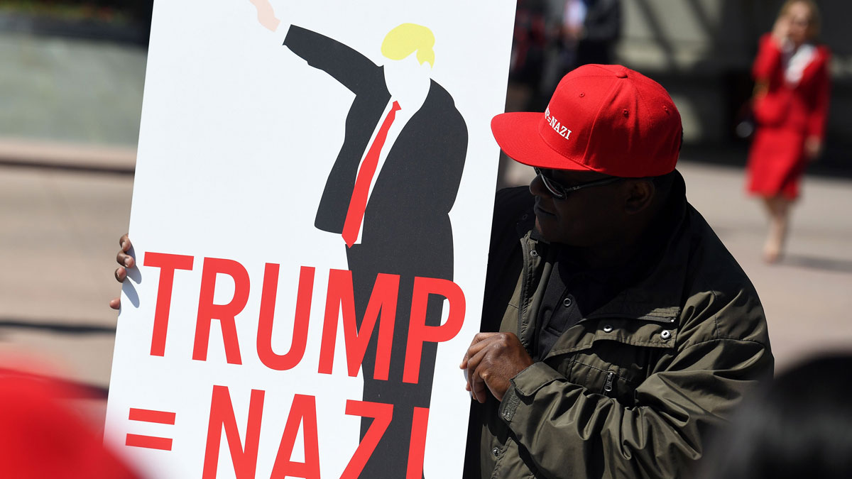 Los manifestantes han portado pancartas con mensajes como "No al odio, no al racismo, no a Trump" y "Trump es el Hitler contemporáneo", y lanzaron huevos a los agentes que impidieron su acceso al hotel donde se encuentran Trump y otros líderes republicanos.