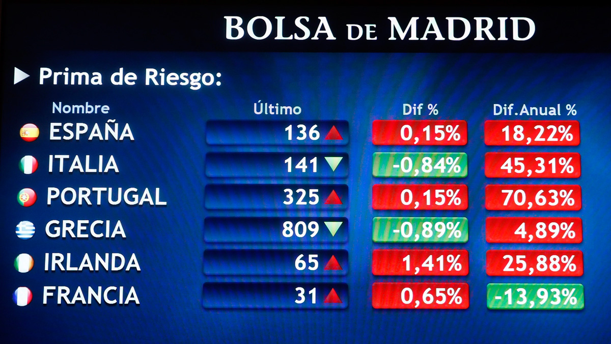- La prima de riesgo está al filo de los 120 puntos con el bono a diez años en 1,2%