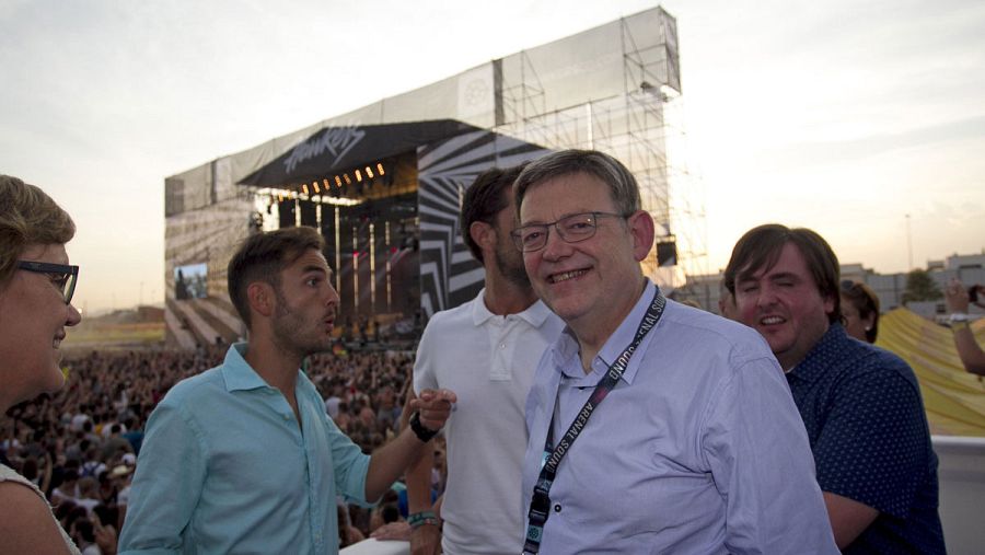 El president de la Generalitat, Ximo Puig (c), asiste a la primera jornada del Arenal Sound. EFE/Domenech Castelló