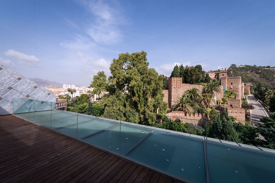 La guinda del Museo de Málaga la pone la terraza-mirador del Palacio de la Aduana, desde donde se puede observar el trabajo realizado para recuperar la antigua cubierta a dos aguas del inmueble, que se perdió en un incendio en 1922, y contemplar unas vistas inmejorables de la Alcazaba de esta Málaga que al fin recupera su Museo con mayúsculas.