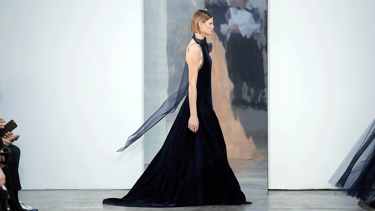 A medida que avanza la colección aumenta la sensualidad de los vestidos. A veces con escotes más pronunciados y otras con el delicado uso del negro, a veces rozando los códigos de la cultura gótica. Casi toda la propuesta es festiva, incluso los looks de pantalon y falda tiene pase VIP para la noche, tienen el sello de Herrera.