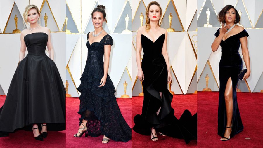 También en negro, pero más acertadas, han estado Brie Larson, con diseño de volantes de Oscar de la Renta, y Alicia Vikander, de Louis Vuitton, con volantes y encajes. Ambas con un claro aire español.