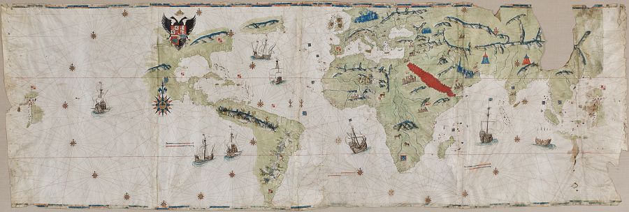 A Hispanoamérica se dedican dos secciones, una de ellas dedicada a la cartografía del Nuevo Mundo con joyas como el Mapamundi (1526) de Giovanni Vespucci, y otra con piezas de arte colonial en las que puede apreciarse el genio creativo de los artesanos indígenas.