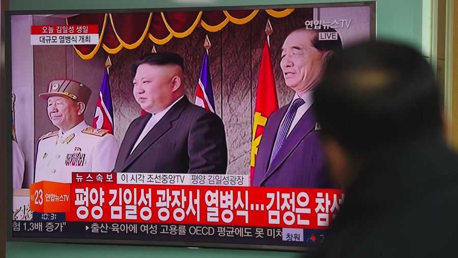 Un ciudadano surcoreano observa a través de la televisión a Kim Jong-un presidiendo el desfile militar. JUNG Yeon-Je