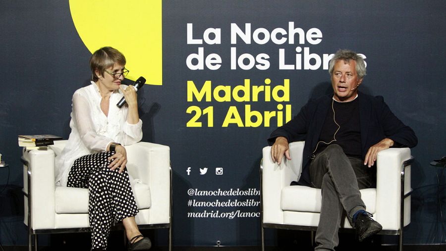 La actriz Assumpta Serna (i) y el escritor italiano Alessandro Baricco (d) durante una conversación con motivo de la Noche de los Libros 2017. Luis Millán