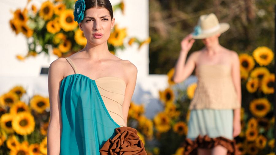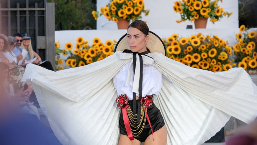 Otra de las colecciones más aplaudidas ha sido la de Laia Valderde Acosta que ha presentado su visión de la vestimenta típica balear y del folclore ibicenco reinterpretando los mantones, pañuelos y vestidos tradicionales para lograr prendas actuales de claro acento historicista. Los bordados hechos a mano y el punto tejido con pasión, con la ayuda de su madre, elevan el tono de la propuesta.