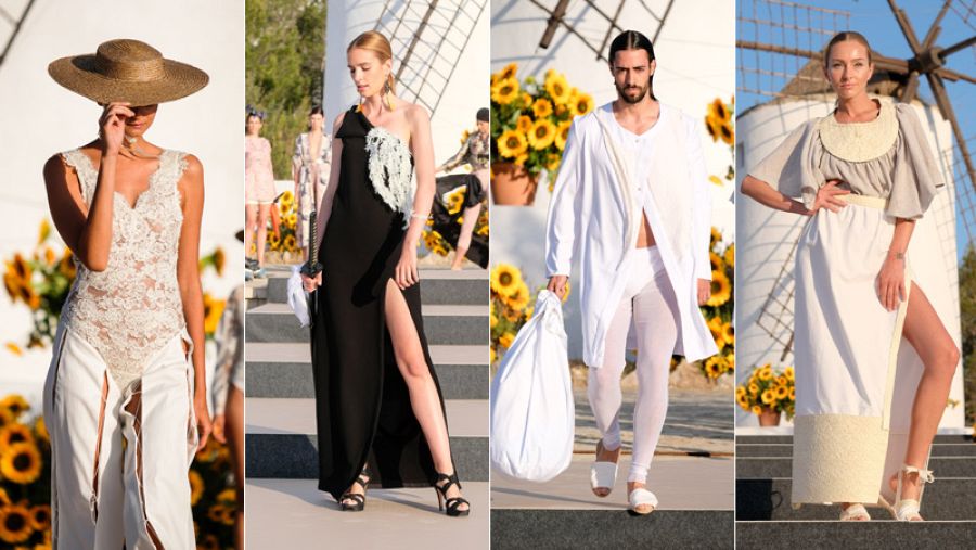 Lina Marcela Rojas se inspira en los 80 y el barroco para lograr una colección muy sofisticada, con encajes, brocados y piel muy trabajada. Nieves Rubio Salom hace un homenaje a la diosa Tanit, icono ibicenco, con prendas en blanco que representa la fertilidad y estampados lunáticos serigrafiados.