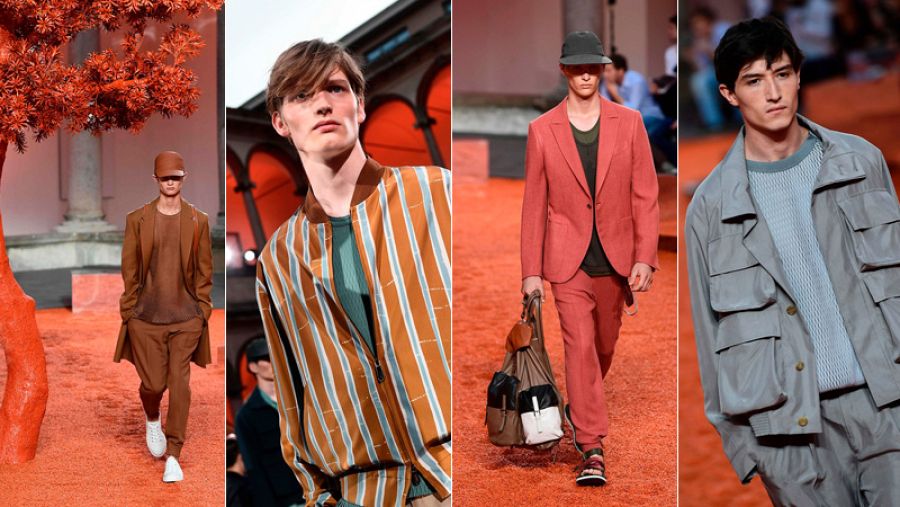 Ermenegildo Zegna también estrena diseñador. Alessandro Sartori debuta con una colección refrescante, con tejidos fluidos y colores veraniegos. Las prendas tienen un patrón relajado y un aire elegantemente desenfadado que resulta encantador.