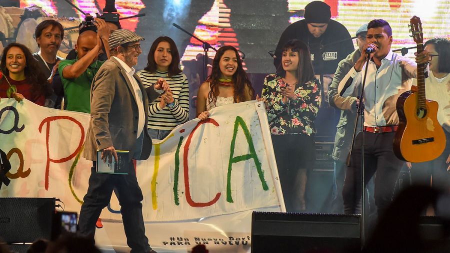 Tras la clausura del congreso, la Fuerza Alternativa Revolucionaria del Común (FARC) han organizado un concierto en la céntrica Plaza de Bolívar de Bogotá.