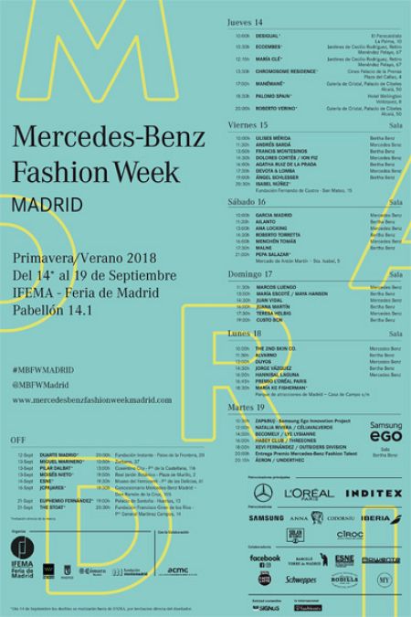 47 creadores y marcas presentarán sus colecciones para la primavera y el verano de 2018 del día 14 al 19 de septiembre aunque desde el 12 y hasta el 21 habrá desfiles en lugares emblemáticos de Madrid. Entre ellos, los de Roberto Verino y la firma ManéMané que han escogido el Palacio de Cibeles, aunque ambos están amparados bajo el paragüas de Ifema.