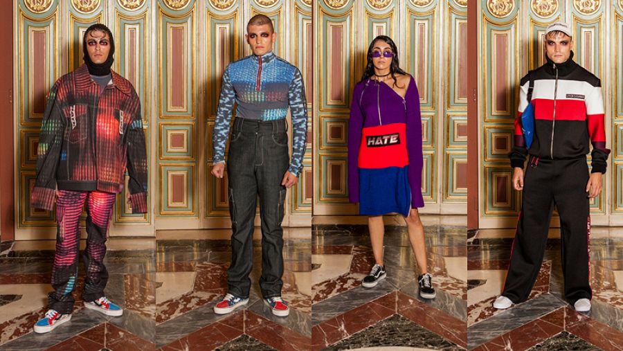 “He mezclado el odio y la repulsa que las clases pudiente sentían por la clase obrera pero también el odio por los recuerdos de mi infancia y adolescencia”, cuenta. Las prendas son el retrato generacional “de los jóvenes nacidos entre 1985 y 1990 que crecieron en los 2000 con el boom de internet y las redes sociales”.