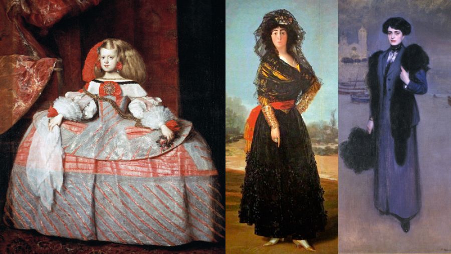 La escritora describe el XVI como “el gran siglo español del traje” y señala que el negro, “convertido en símbolo de la monarquía española”, se puso de moda y arrasó como tendencia. Además, hay importantes cambios estéticos: se estilizan las líneas del cuerpo, los hombres dejan las piernas al descubierto y la silueta femenina vive una transformación gracias al uso del cuerpo (un corsé rígido) y el verdugado (que provocaba una forma de campana a la falda que se ponía encima).