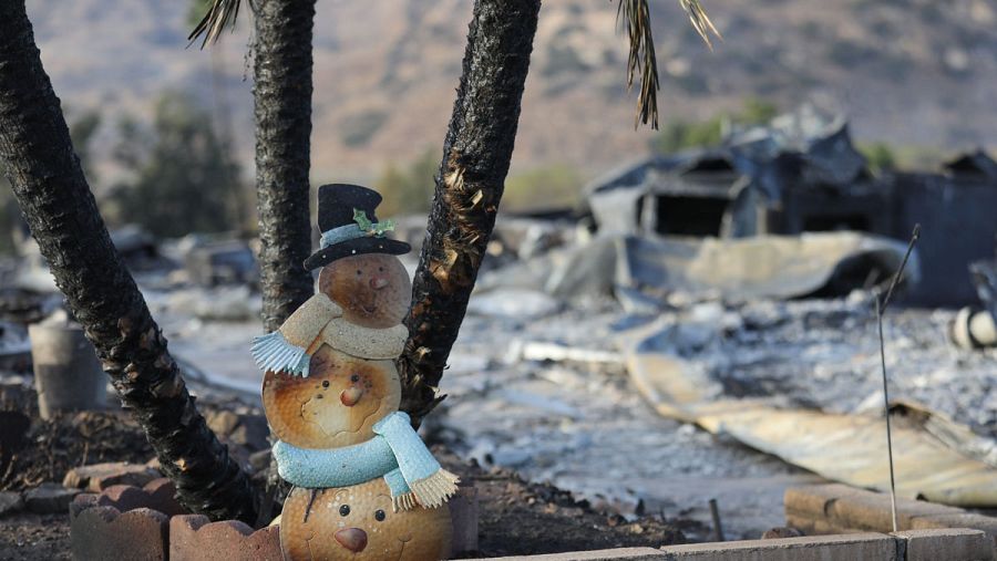Un adorno de Navidad frente a una casa afectada por el fuego. EUGENE GARCIA