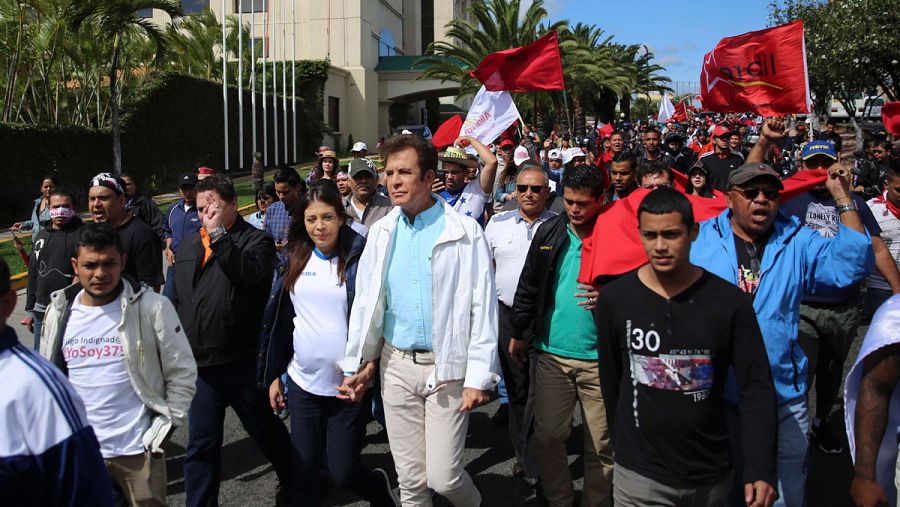 Nasralla (C) participando en una manifestación en Tegucigalpa (Honduras). Gustavo Amador
