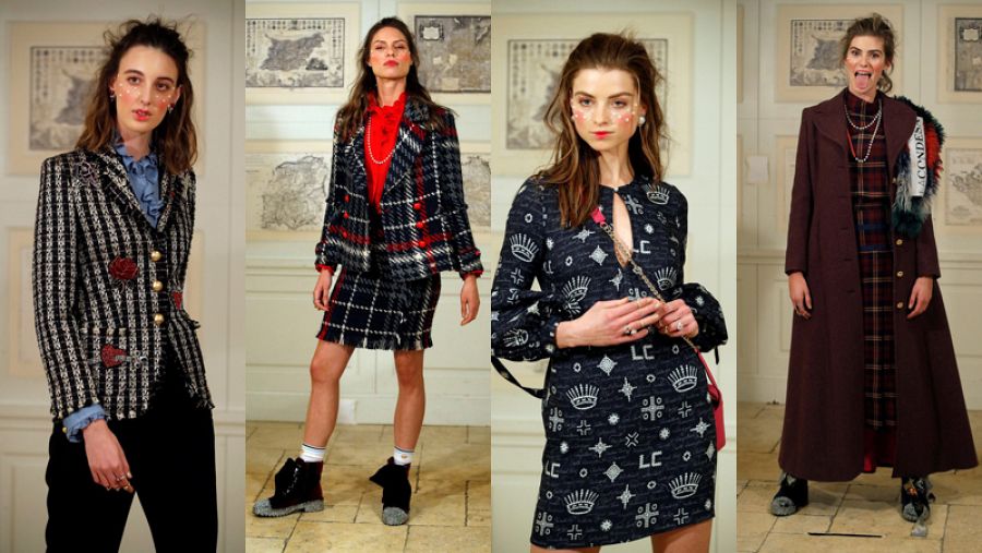 Esta apasionada de grupos como New Order y Joy Division cuenta que lo que ha hecho ha sido "mezclar la estética más rancia de la aristocracia británica con la movida inglesa”. Su colección pretende vestir a una joven duquesa de Devonshire que “de día lleva un estilo noble y clásico y de noche lleva un estilo más canalla”. Así vemos vestidos señoriales que parecen haber sido 'atacados' con una tijeras en un arrebato de pasión pero también otros de aire vintage cuajados de lentejuelas que no tienen edad.