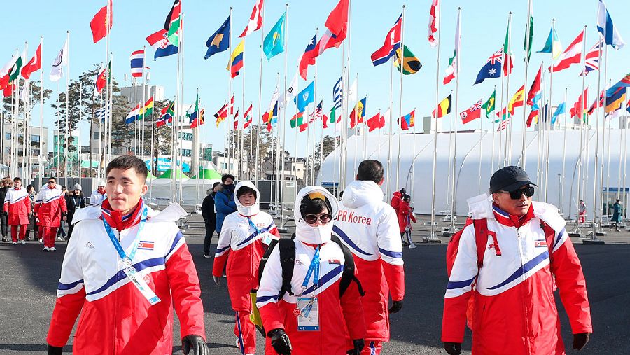 Atletas de Corea del Norte pasean por la Villa Olímpica en Gangneung, provincia de Gangwon (Corea del Sur) noticias