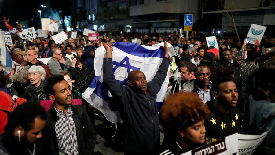 Miles de personas protestan en Tel Aviv contra el plan israelí de deportar masivamente a africanos