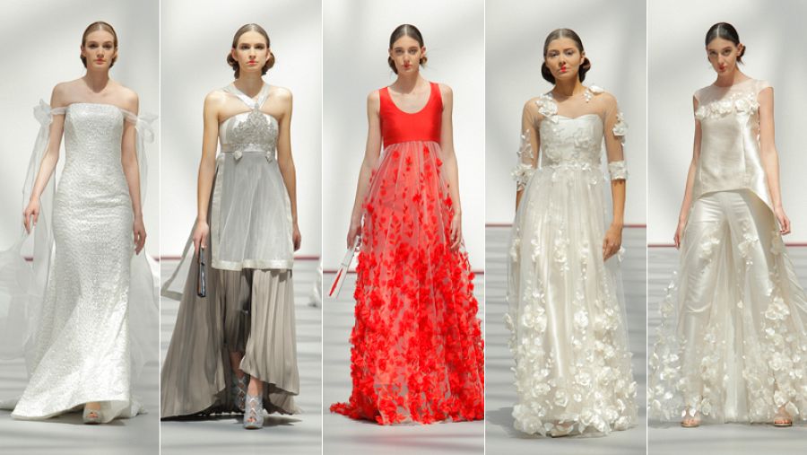 El algodón es el tejido dominante, siempre con puntillas o bordados de tul. Las formas varían con capricho y vemos vestidos muy ajustados y otros que se alejan del cuerpo con siluetas oversize.