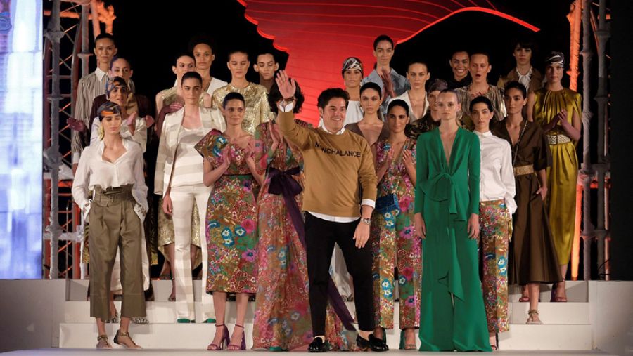 Jorge Vázquez saluda tras el desfile con sus modelos. Efe noticias