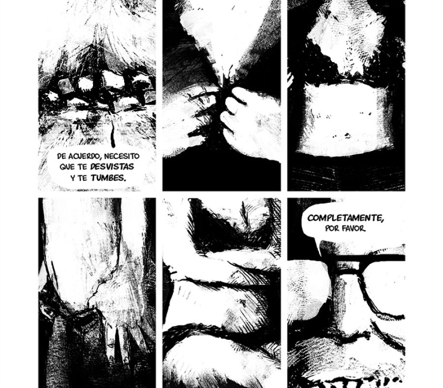 Destacar la terrorífica atmósfera que consigue Pablo caballo. “En cuanto a que la historia, siendo un thriller psicológico, haya acabado tomando derroteros casi de terror creo que se debe en gran medida a que Fernando y yo nos hemos influenciado mutuamente a modo de sinergia. Por mi parte he intentado plasmar la visión de Fernando de la mejor manera posible dentro de mis limitaciones y creo que Fernando, como gran profesional que es, ha sabido adaptar su guion a mi estilo”.