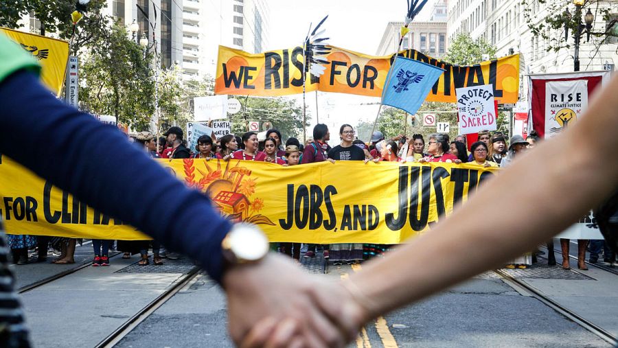 Bajo el lema "Rise for Climate, Jobs and Justice" (Levántate por el clima, los empleos y la justicia), esta movilización se ha enmarcado en una jornada de acción mundial con protestas en diferentes ciudades del mundo.