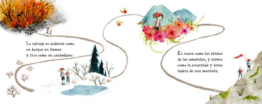 El primer libro de esta colección, que ya está a la venta, es un bello cuento, En busca de lo salvaje, de la escritora Megan Wagner Lloyd y la ilustradora Abigail Halpin, ambas norteamericanas. Megan confiesa que una de sus mayores aficiones ese pasear por el bosque y perderse, a ver qué descubre.