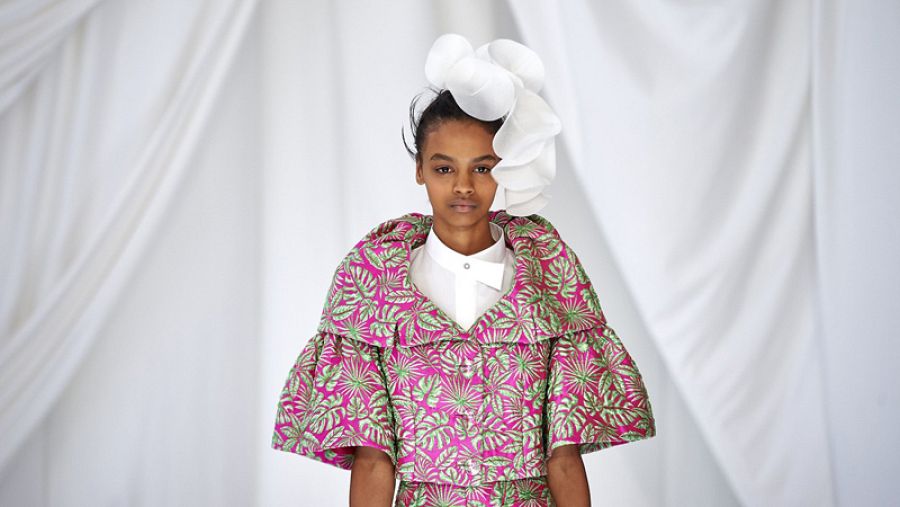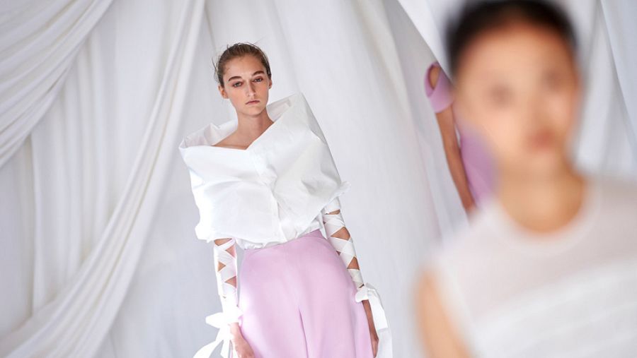 Las prendas toman prestadas las formas de las flores en la nueva propuesta de Delpozo. AFP