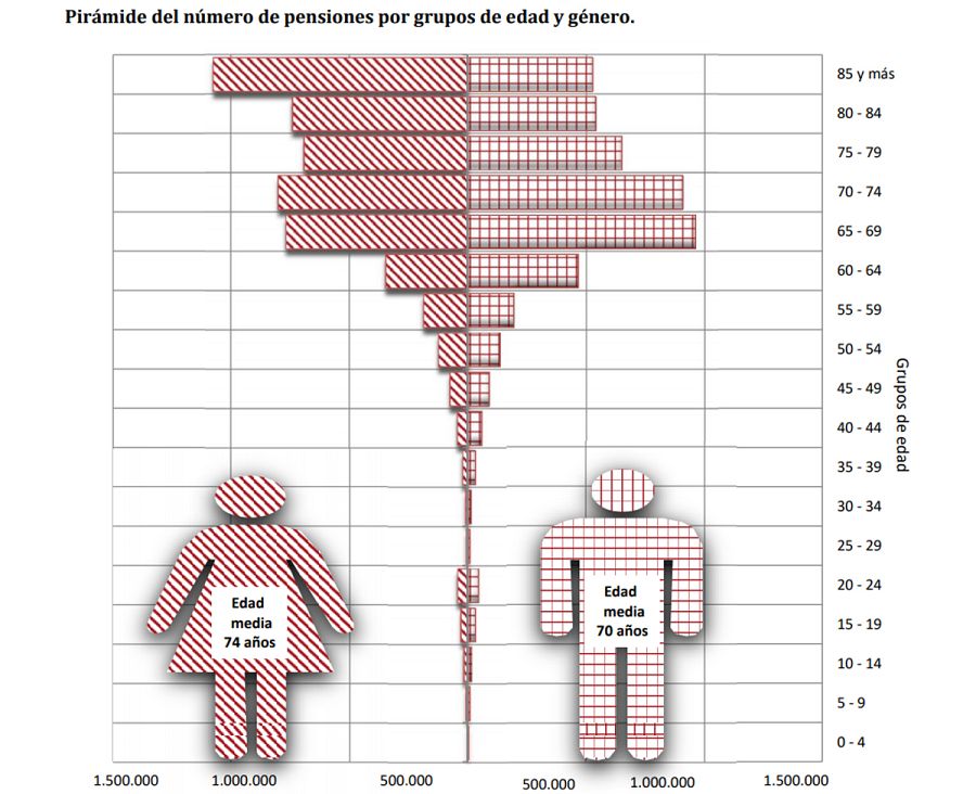 Entre los pensionistas más ancianos, los mayores de 85 años, hay un millón de mujeres cobrando 622 euros mientras que el medio millón de varones de la misma edad reciben de media 943 euros.