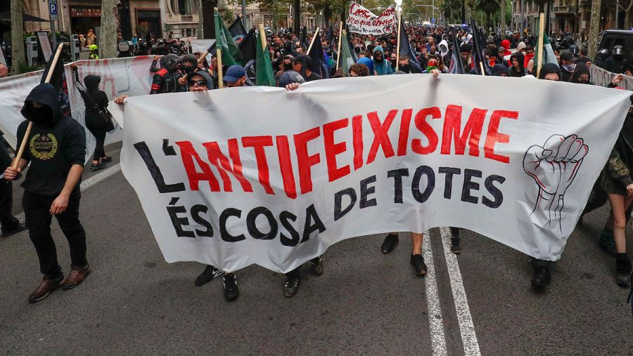 Por otra parte, la plataforma Barcelona Antifascista ha convocado una manifestación en la ciudad condal pero su recorrido discurre por otras calles y las dos marchas no se han encontrado por lo que no se han producido incidentes. La Falange ha convocado una tercera manifestación en la que se han quemado varias banderas esteladas.
