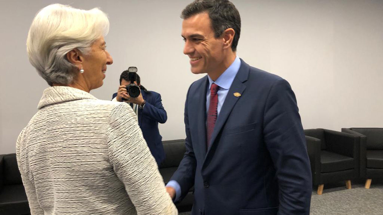 Lagarde valora el compromiso de Sánchez para reducir el déficit y la deuda
