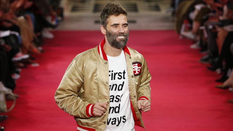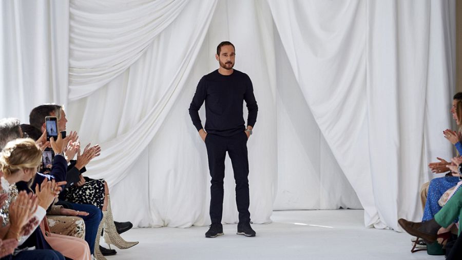 Josep Font saluda tras presentar en Londres la colección de primavera de 2019 para Delpozo. AFP