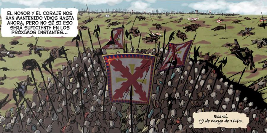 La sangrienta batalla de Rocroi (19 de mayo de 1643), en la que los franceses derrotaron a los temibles Tercios españoles se ha considerado, hasta hace muy poco, el principio del fin para uno de los ejércitos más poderosos de la historia. Una batalla que ahora llega al cómic en 1643: Rocroi (Cascaborra ediciones), del guionista Roberto Corroto y el dibujante Román López-Cabrera.